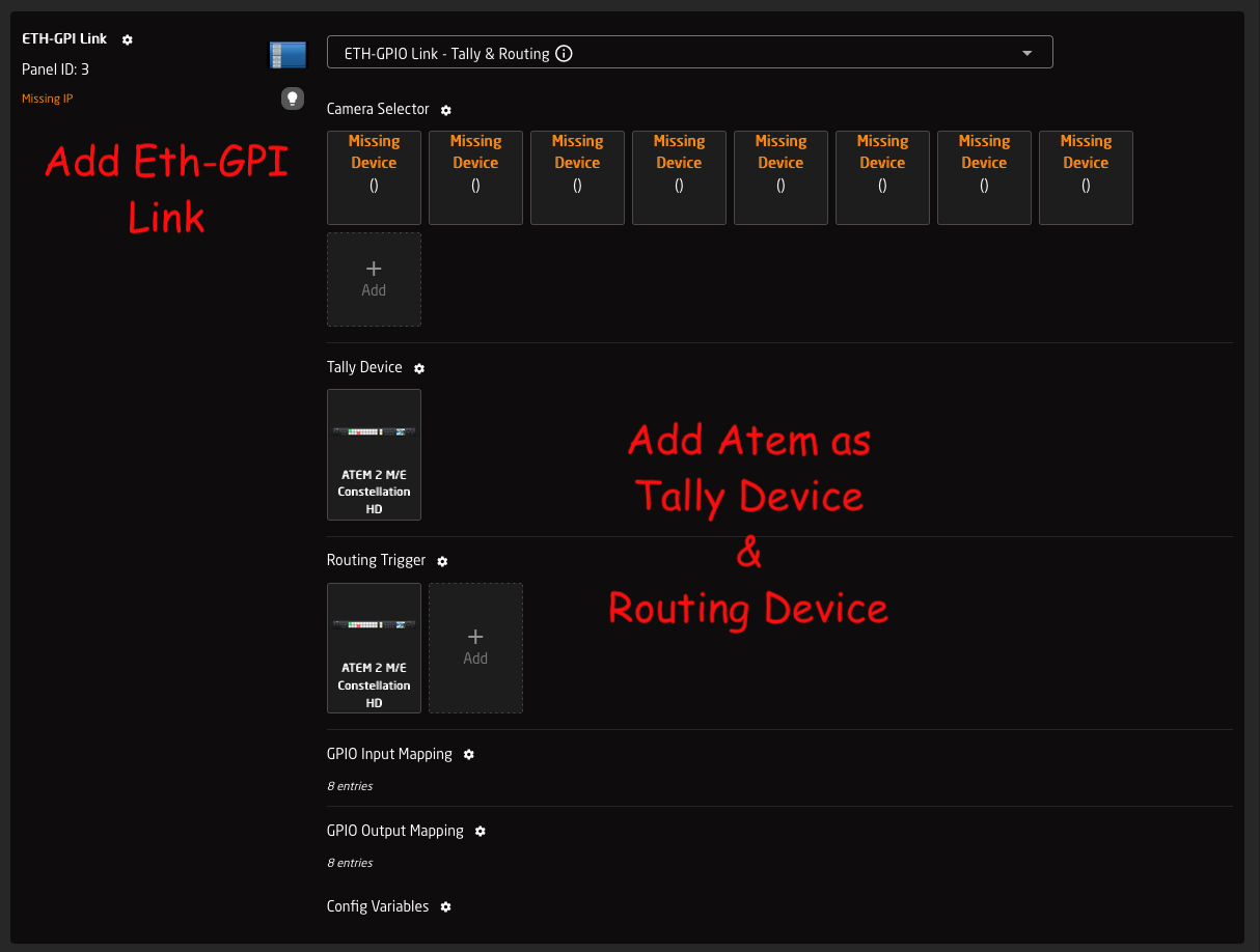 - In the ETH-GPI Link configuration drop-down menu, select default configuration 'Tally & Routing'